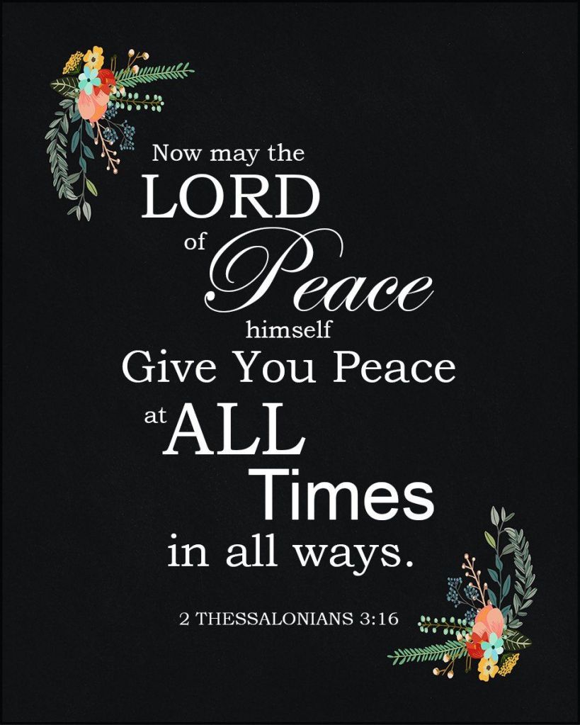 3:16 保羅為帖撒羅尼迦信徒祝福。賜平安的主,耶穌已經使帖撒羅尼迦信徒與上帝和好,藉著賜給他們內心的平安,使他們不再驚慌恐懼(2:2)。隨時隨事,特別在面對末日的惶恐(2:1~3:5)和持續的逼迫中(1:5-10)有平安。