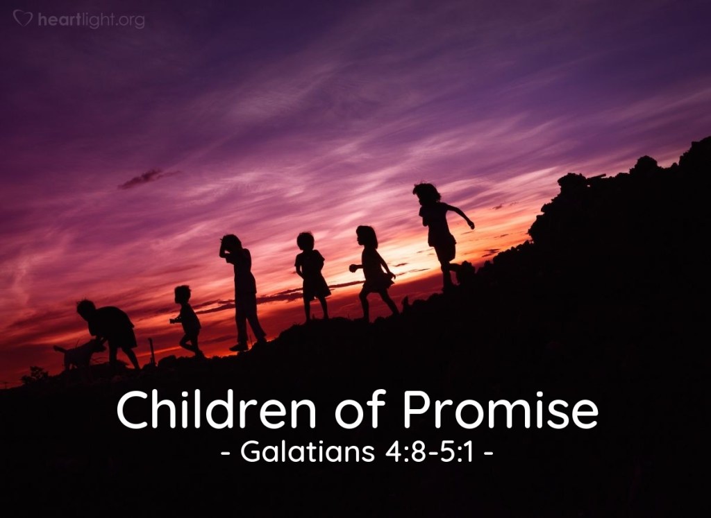 4:21-31 《舊約》中的福音(3):亞伯拉罕的子孫 保羅繼續強調,作上帝的自由兒女和作律法、罪、假神的奴僕,兩者有著天壤之別。這節經文的背景是創16~17章和21章,按照出生的次序,以實瑪利是亞伯拉罕的長子,代表亞伯拉罕那些為奴的子孫,受制於西奈之約,因為他是由使女夏甲生的;而以撒則代表亞伯拉罕那些自由的子孫(見3:7、29)。