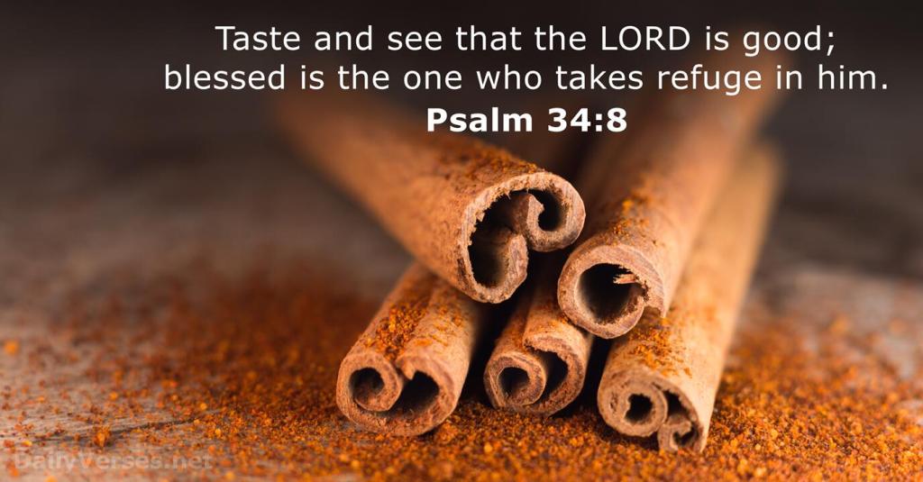 34:8-14 因此,你們和我一起敬畏上帝。詩歌在提到謙卑人(2節)以及那些敬畏上帝的人(7節)之後,進而鼓勵所有誦唱本詩的人敬畏上帝(9節),即尊崇祂;並嘗試教導他們何訓敬畏祂(11-14節)。動詞嘗嘗(8節)在《舊約》中常作字面意思來解釋,有時隱喻個人的經歷。這個詞在《新約》中則廣泛用作隱喻(約8:52;來2:9,6:4等)。聖民(34:9)即聖潔的人,指那些被上帝分別為聖、歸給祂自己的人,即祂的百姓。他們應該回應上帝的恩慈,活出聖潔的生活(利20:7-8)。請注意,聖潔的生活通過與別人良好相處而顯得非常特別(34:13-14)。《彼得前書》引用這裏的經文:彼前2:3 “你們若嘗過主恩的滋味,就必如此”(《和修》“因為你們已經嘗過主恩的滋味”),其中的 “主” 是指耶穌;彼前3:10-12用詩34:12-16來總結基督徒的理想行為和生活方式。