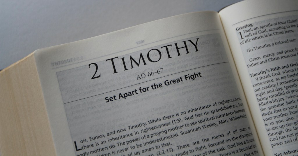 This was the final letter written by Paul (A.D. 64-68) as he awaited execution in a Roman jail. Despite all that Paul was facing-death, the end of his ministry, abandonment by most of his friends for fear of persecution he faithfully directed his spiritual son Timothy to the hope that is in Christ. As he exhorted Timothy to boldness, endurance, and faithfulness in the face of false teaching, Paul showed his customary concern for sound doctrine. Scripture, said Paul, is inspired by God and therefore is sufficient in all things pertaining to the faith and practice of Christians (3:16-17). Older believers, therefore, should be eager to pass on their knowledge of Scripture to those who are younger in the faith (2:2).