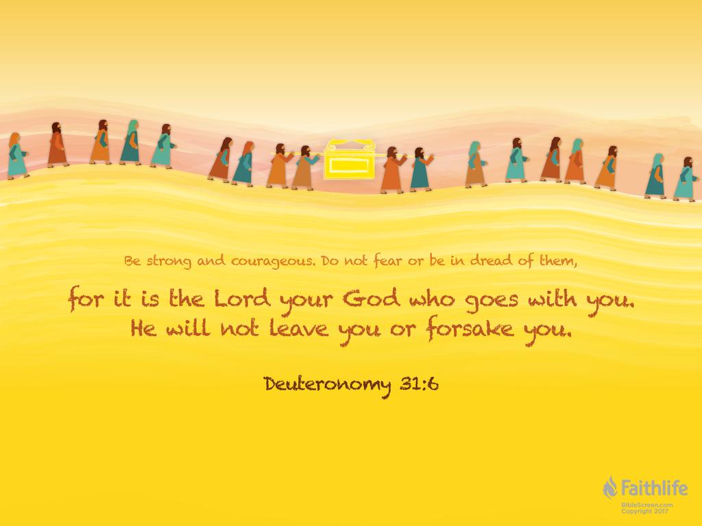 使当日的以色列人和今日的我们仍能刚强壮胆的是神应许与我们同在,祂必不撇下,也不丢弃我们。正如来13:8:“耶稣基督昨日今日一直到永远,是一样的”。