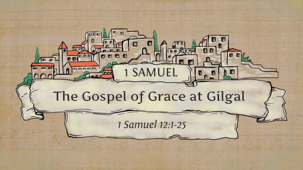 12:1-25 撒母耳的告別演說。這總結了以色列君主制的建立。撒母耳對百姓的講話類似於法庭程序中的訴訟。撒母耳在法庭上宣稱自己是無辜的(第1-5節),並指責百姓一再不忠,拒絕上帝作王(第6-19節)。雖然百姓有罪,但耶和華不會撇下他們,因為他們是祂的選民(第20-25節)。雖然以色列現在有了君王,但撒母耳並沒有從故事中消失:他還將廣泛地與掃羅打交道(第15章),並膏立一位新王來代替掃羅(第16章)。12:1-5 撒母耳為自己的無罪辯解。這一幕緊接在吉甲的集會之後(11:12-15),所以它很可能發生在那裏、在那個時候。撒母耳對以色列人拒絕他的領導,選擇了一個王來代替他,仍然感到不安和憤怒(8:4-7)。現在,在一個司法場景中,撒母耳宣告他是無辜的;他的辯護單只是“無罪”。(BTSB)
