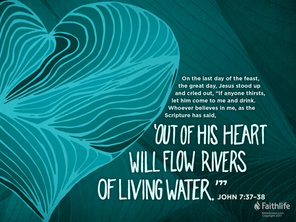 7:37~38 是在住棚节的末日说的,预示上帝应许要赐下浇灌属灵生命成长的活水,进一步说明这活水的源头就是耶稣基督,并在第39节中明确地把水和圣灵连在一起。
