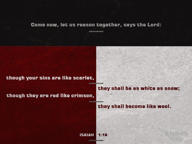 1:18-20 我們彼此辯論,上帝不允許百姓一直對信仰糊裏糊塗,催促他們要認真思考,明白自己在上帝面前的真實情況。你們的罪雖像朱紅……紅如丹顏,指他們的手雖被血染紅(15節),也能被洗淨(詩51:7),但他們必須做出審慎的選擇(賽1:19-20)。