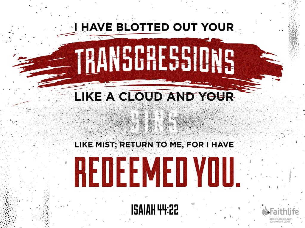 44:22 像厚雲……如薄雲,在上帝的恩典面前,所有的罪化為烏有。你當歸向我,因我救贖了你,上帝的恩典激勵人悔改(參羅2:4)。