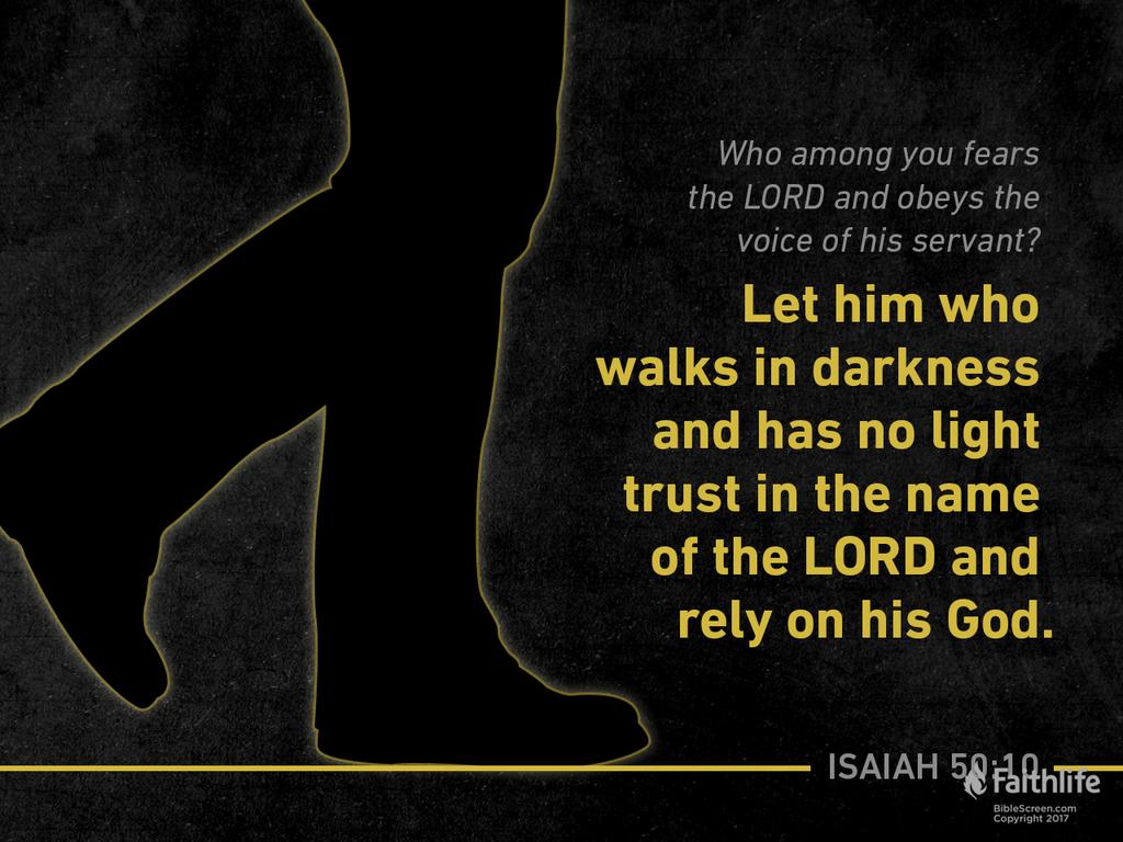 50:10-11 以賽亞指出,人對上帝的僕人有兩種回應:(1) 敬畏上帝,聽從上帝僕人的話,在今生的艱難黑暗中也信靠祂。(2) 倚仗自己的智慧,為自己點燃虛假的光,然後永遠躺在悲慘之中(參箴16:25)。