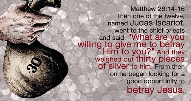 猶大賣主耶穌:「用了僅僅三十塊錢就賣了耶穌,這金額按照註釋只是一個奴僕的身價,相當地看不起耶穌。因此耶穌在逾越節晚餐時則是宣告猶大:賣人子的人有禍了!那人不生在世上倒好。」