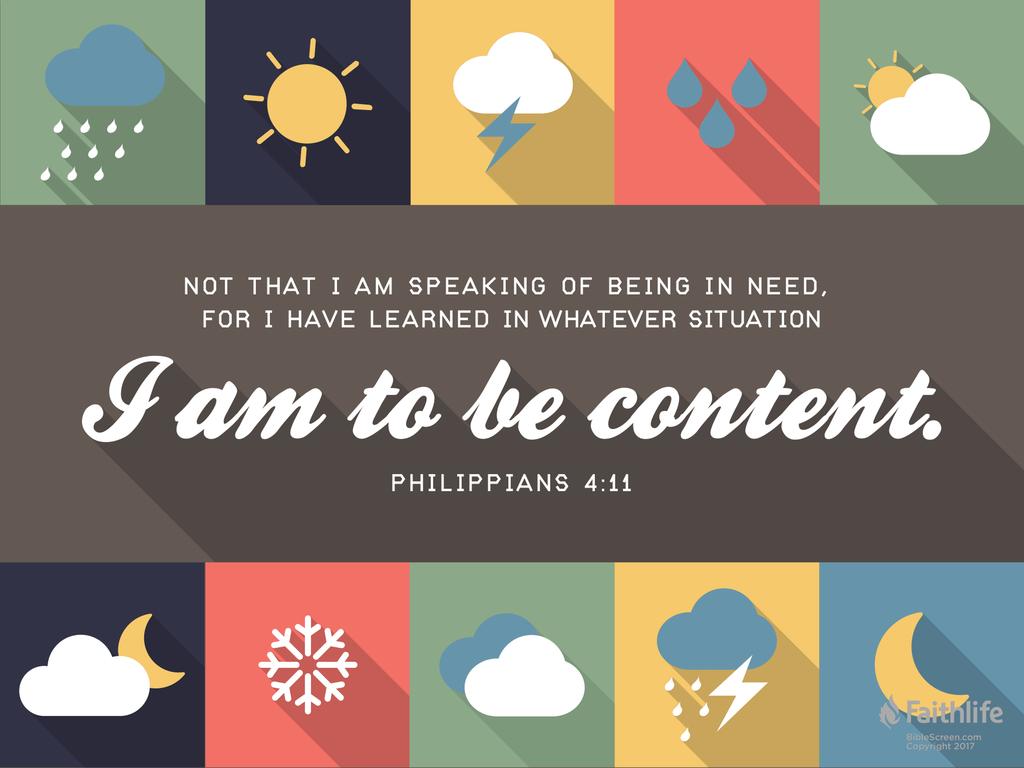 4:10-11 保羅為腓立比信徒的支持而感恩,但他希望他們明白,他已經學會了在艱難的處境中仍然知足。