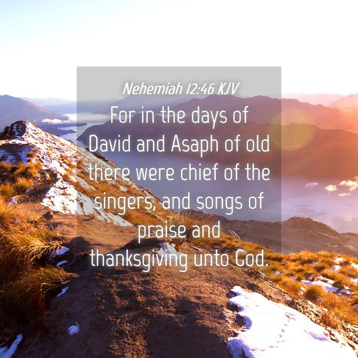 12:24-26 這是一份關於約雅金和他以後時期(見10節)的記錄,類似23節。神人大衛,指作為先知的大衛,如36節、代上25:2和代下8:14所記,這些經文記載了大衛組織祭司和利未人在聖殿中事奉,這是他作為先知的職事。約雅金在以斯拉時期是大祭司(見12:12),但到了尼希米時期,擔任此職的顯然是以利亞實(3:1)。但是,這裏將以斯拉和尼希米時期視為一個整體,並與約雅金相關聯。