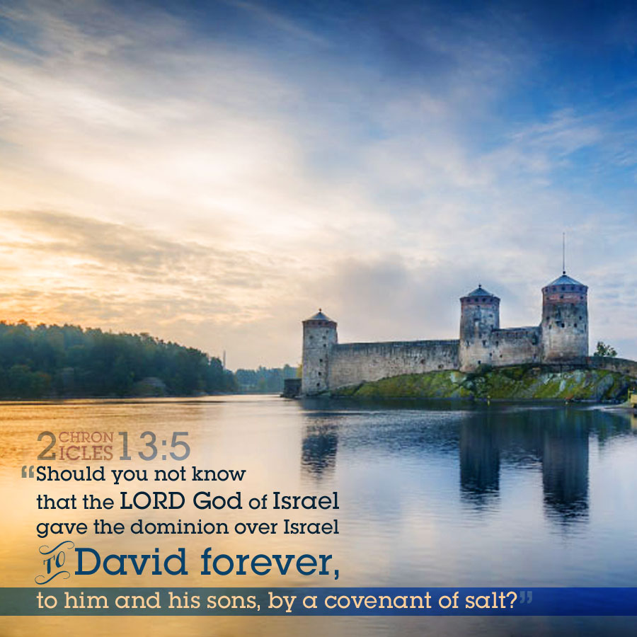 13:5-8a 鹽約是指永遠有效的條款,見民18:19。上帝將以色列國永遠賜給大衛和他的子孫,耶羅波安和北方支派卻起來對抗,因此受到亞比雅譴責。耶羅波安的王位被廢除,因為他背叛主人所羅門,而大衛的國就是耶和華的國(見9:8)。