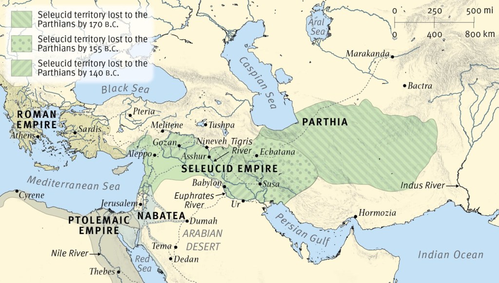 塞琉古王朝(主前312[305]—主前80[66]年)“塞琉古”這個名字取自塞琉古一世尼卡特(主前358—主前281年),他是亞歷山大大帝三名主要的繼任將領之一。從亞歷山大大帝死後(主前323年)直到羅馬將軍龐培征服(主前65年)併吞並希臘王國,好幾位繼任統治敍利亞、承襲說希臘話傳統的君主都沿用這個名字。