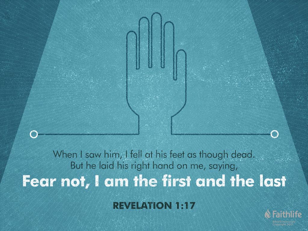 答:17-20節,基督說祂是首先的,也是末後的,祂和父神一樣,都是永恆的上帝(見賽41:4,44:6,48:12)。祂也是歷史的中間點——即祂的死與復活——的主,祂為自己以及一切屬祂的人戰勝了死亡的權勢,如今永遠活著,手拿死亡和陰間的鑰匙。祂如今也將這勝過陰間的權柄賜給了教會(太16:18-19)。祂手裏拿著七星與七燈台。七星可以指天使、地上的使者或牧人,或教會擬人化身份,象徵祂完全的能力與對教會的掌管。燈台象徵著教會照明世界的職責(太5:14-16)。
