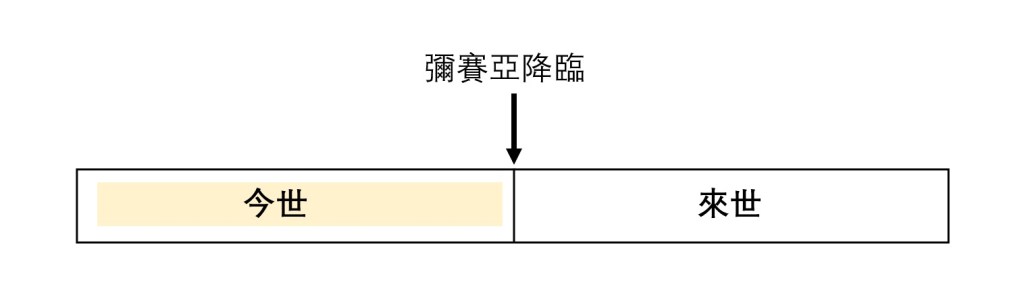 新約觀點:在彌賽亞第一次降臨時,來世已經開始了,但今世還未完結。在彌賽亞再來時,今世就會終結,來世則會繼續下去。