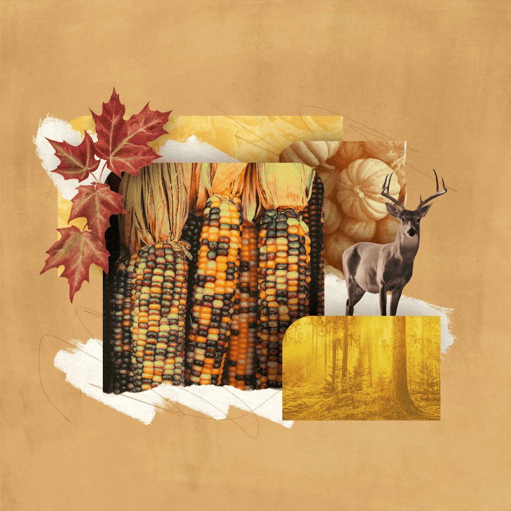 除了在第一個感恩節上吃的家禽之外,美洲印第安人還帶來了五頭鹿,作為他們對感恩節的捐助。據推測,他們還吃了玉米。